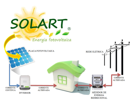 O excesso de eletricidade volta para a rede elétrica através do relógio de luz bi-direcional. Esse relógio de luz mede a energia da rua que é consumida quando não tem sol e, a energia solar gerada em excesso quando tem muito sol e é injetada na rede da distribuidora e vira "créditos de energias"